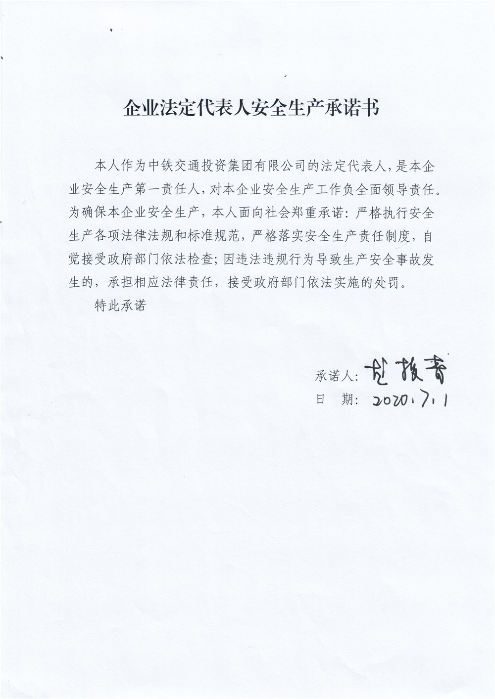 企業(yè)法定代表人安全生產(chǎn)承諾書
