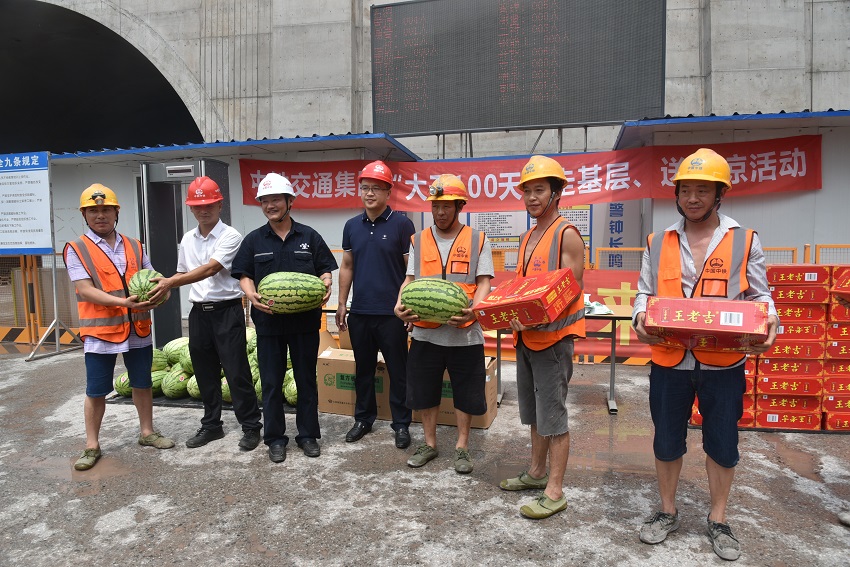 8月5日,集團(tuán)公司黨委書記、董事長龍?jiān)嗌钊胫心瞎鹃L沙空港城PPP第五、第八項(xiàng)目部開展“炎炎夏日送清涼 滴滴關(guān)懷暖人心”活動,并叮囑項(xiàng)目部切實(shí)加強(qiáng)對職工的關(guān)懷,深入開展“夏送清涼”活動,做好職工防暑降溫工作。