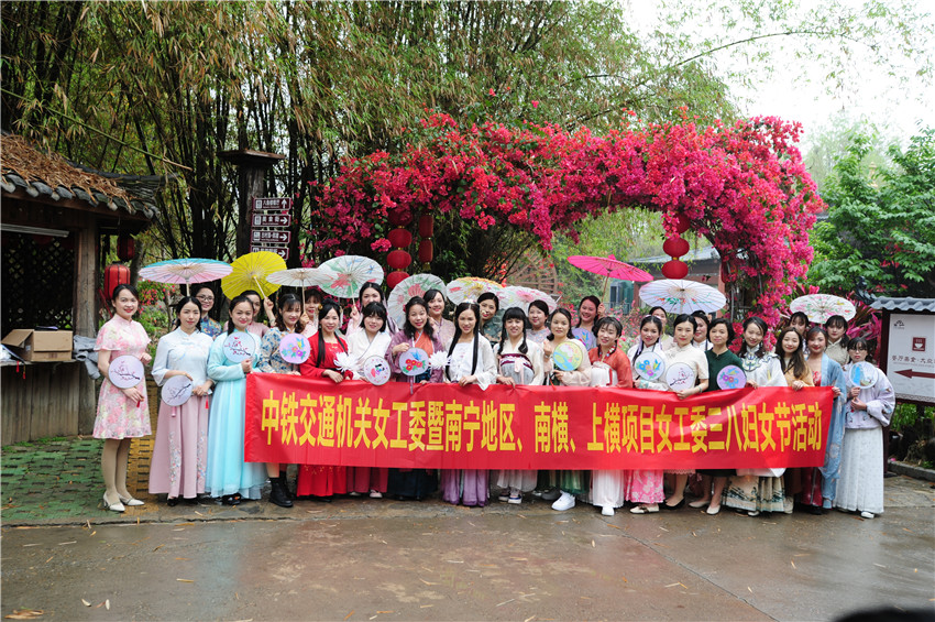 中鐵交通機(jī)關(guān)、南寧地區(qū)、南橫、上橫項(xiàng)目一眾女神齊聚,組織開(kāi)展了以“傳承中華國(guó)粹·綻放巾幗魅力”為主題的漢服秀傳統(tǒng)文化體驗(yàn)活動(dòng)。