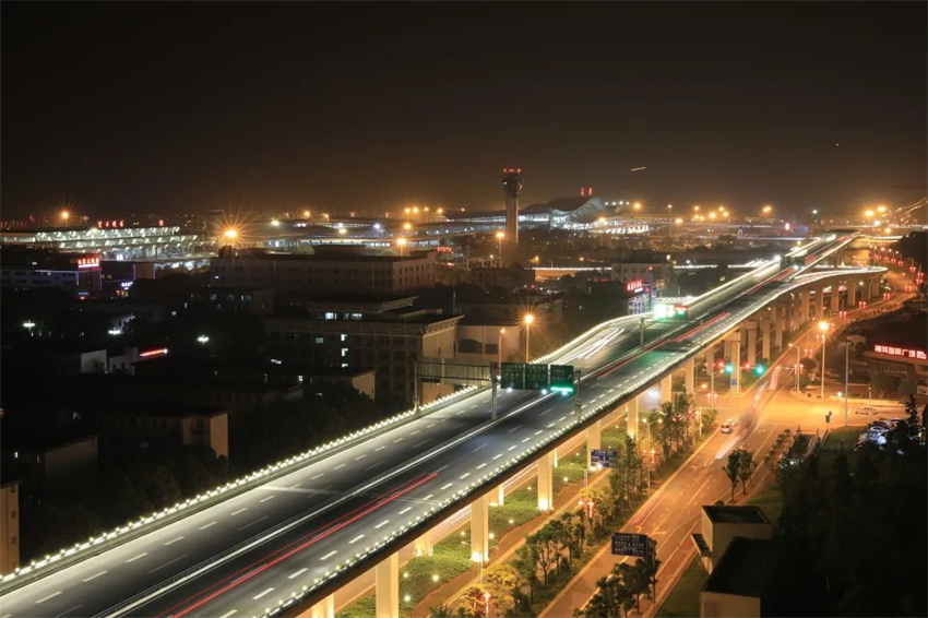 ▲燈光璀璨奪目、立體感強(qiáng)的長(zhǎng)沙機(jī)場(chǎng)大道