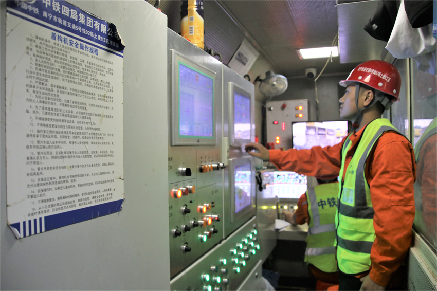中國中鐵各參建單位堅持以創(chuàng)新思維引領(lǐng)項目建設(shè),積極應用新設(shè)備、新工法、新工藝,應用國內(nèi)首臺泥水—土壓雙模盾構(gòu)機順利穿越過江區(qū)間復雜地層,聯(lián)絡(luò)通道采用冷凍法施工工藝成功克服涌水涌沙風險,使用預制站臺板安裝工藝大幅節(jié)約資源消耗,大斷面暗挖隧道優(yōu)化成三臺階施工工法節(jié)約工期,打造AI應用樣板工地推動項目安全管理智能化,應用軌行區(qū)管理信息系統(tǒng)高效預警預報,一系列技術(shù)創(chuàng)新實踐顯著提高了施工效率,為實現(xiàn)南寧地鐵5號線開通試運營目標奠定了堅實基礎(chǔ)。