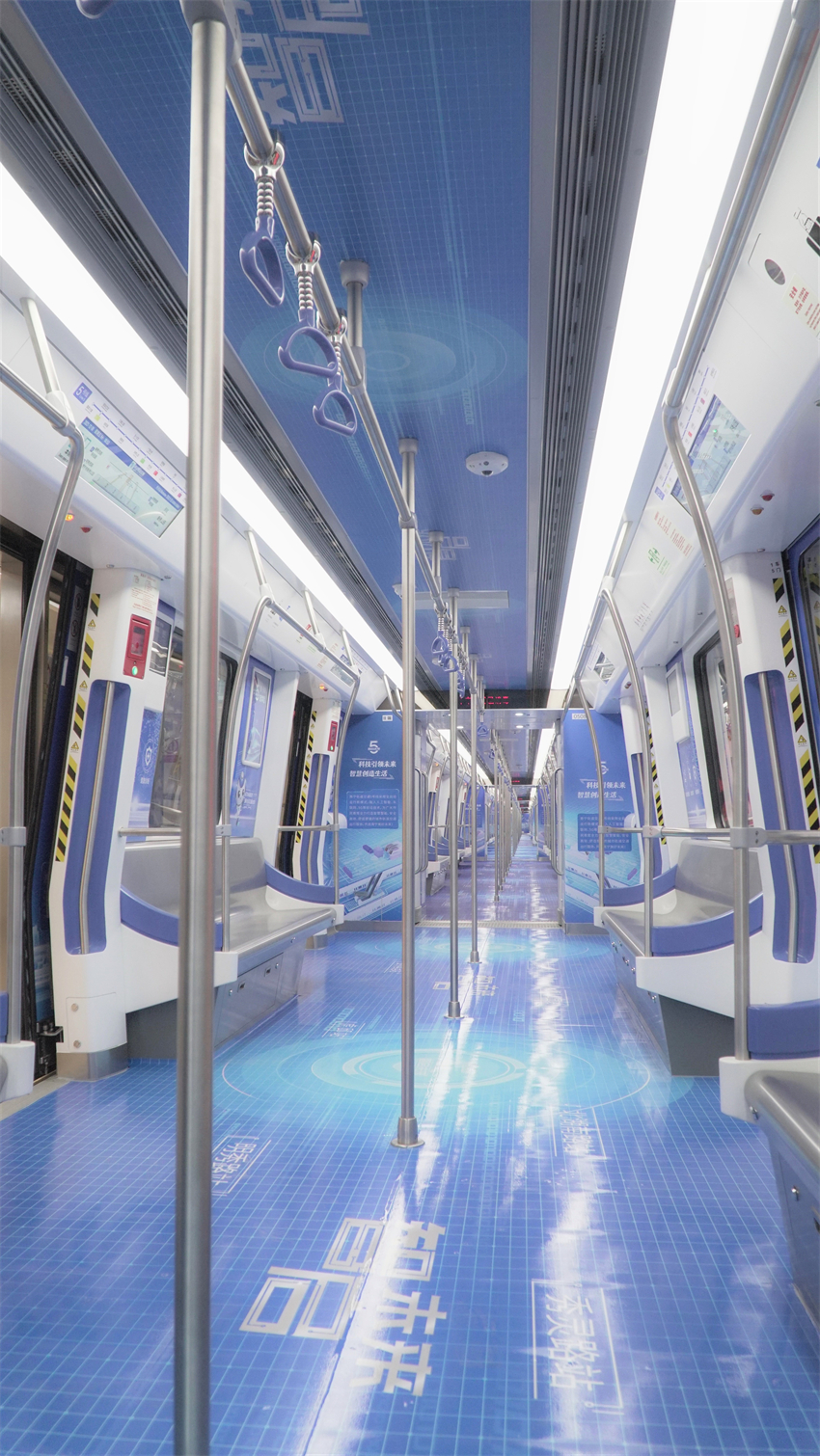 南寧軌道交通5號線定位為生態(tài)宜居線,整體裝飾以“綠城水韻”為主題,以“邕水藍”為線路色,以“邕江之水”為文化元素,象征著綠城南寧在母親河邕江水的滋養(yǎng)下,生機盎然。列車采用全自動駕駛技術(shù),在車輛行駛、狀態(tài)評估、故障處置等方面實現(xiàn)了全自動控制,為市民提供了更智能、更安全、更舒適、更便捷的高品質(zhì)出行服務(wù)。