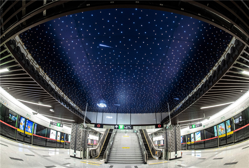 ▲觀洲站:桃花元素象征城市商貿的繁榮和旺盛