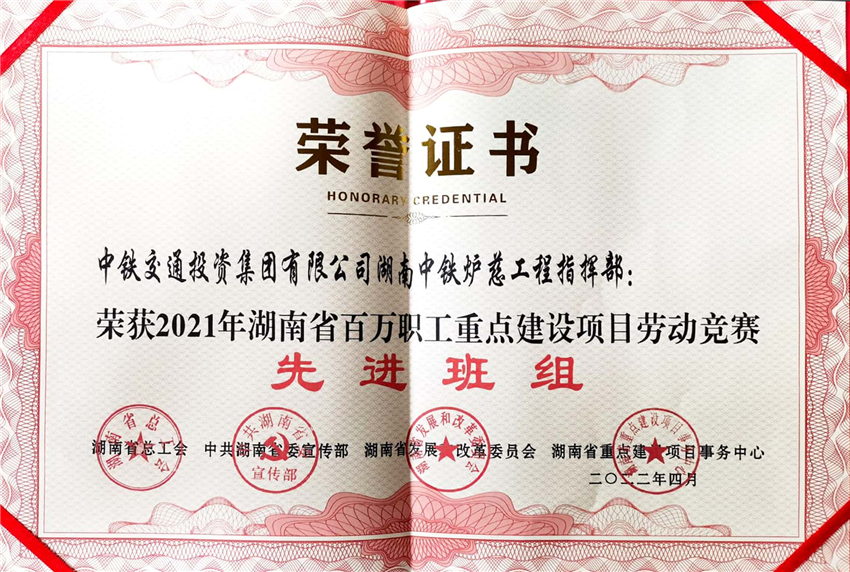 4月29日上午9時(shí),湖南省慶祝“五一”國(guó)際勞動(dòng)節(jié)暨先進(jìn)集體先進(jìn)個(gè)人表彰大會(huì)在長(zhǎng)沙召開(kāi)。爐慈桑龍項(xiàng)目共摘得5項(xiàng)“助力十四五 建設(shè)新高地”湖南省百萬(wàn)職工重點(diǎn)建設(shè)項(xiàng)目勞動(dòng)競(jìng)賽榮譽(yù):爐慈指揮部、桑龍TJ5標(biāo)項(xiàng)目部榮獲先進(jìn)班組稱(chēng)號(hào),項(xiàng)目公司陶新華、劉芳和爐慈TJ1標(biāo)項(xiàng)目部董李軍榮獲先進(jìn)個(gè)人稱(chēng)號(hào)。